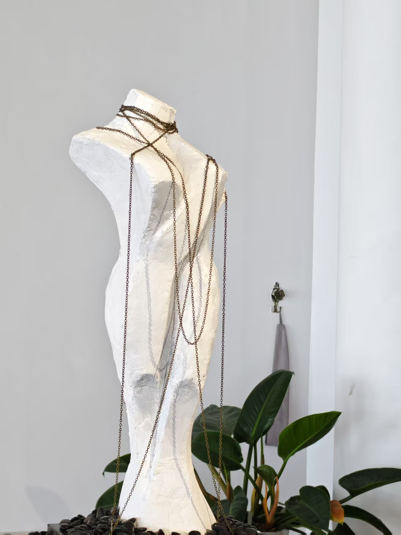 捆著細(xì)鎖鏈的石膏雕塑,沒有腦袋,但胸腔仍在呼吸,看久了會覺得,我們多少都帶著這種溫柔的禁錮活著。