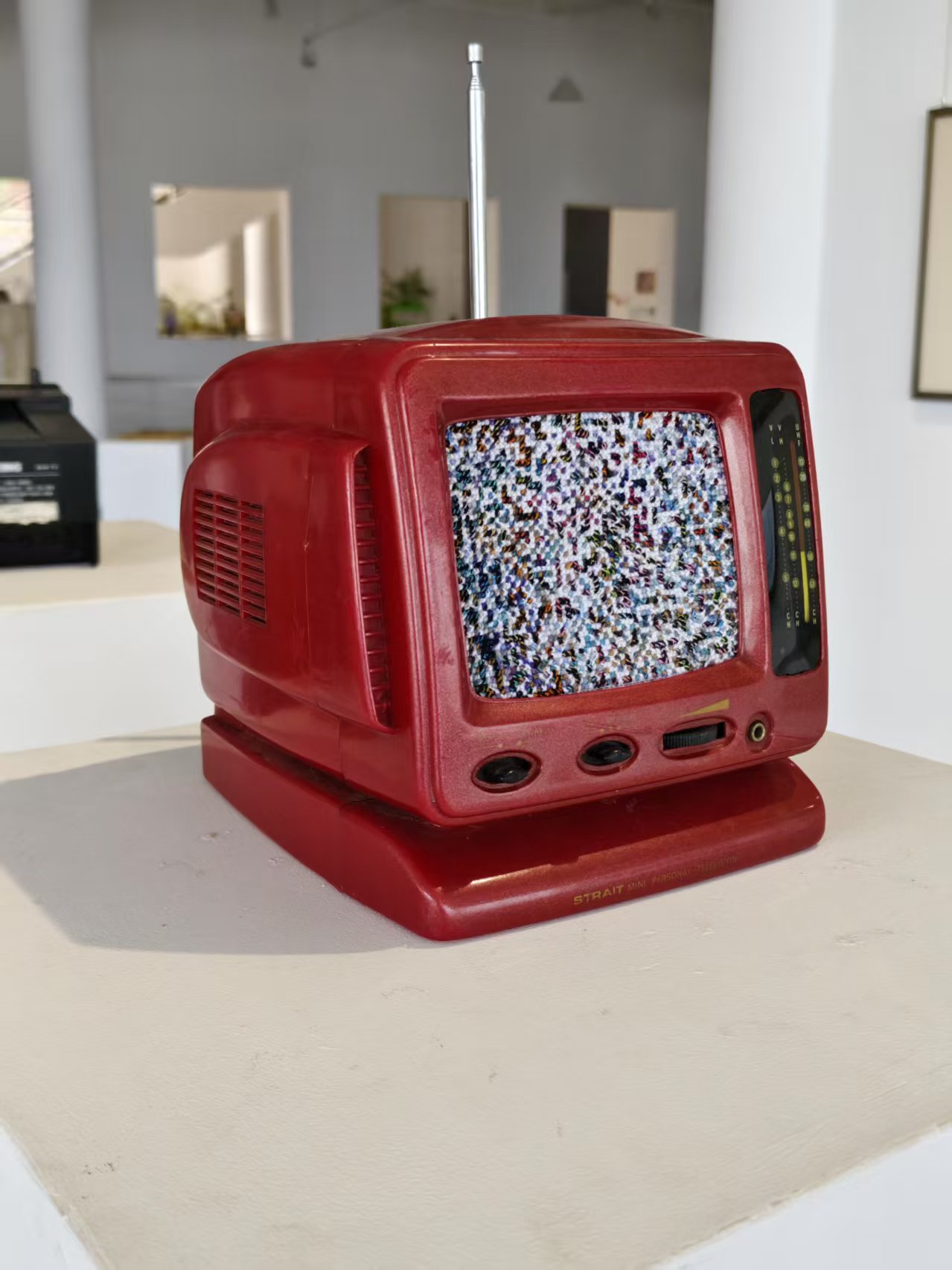 老電視雪花屏換成毛線編織的彩色噪點(diǎn),兩臺電視機(jī)一紅一黑,像從外婆家樟木箱里挖出的青春期標(biāo)本。