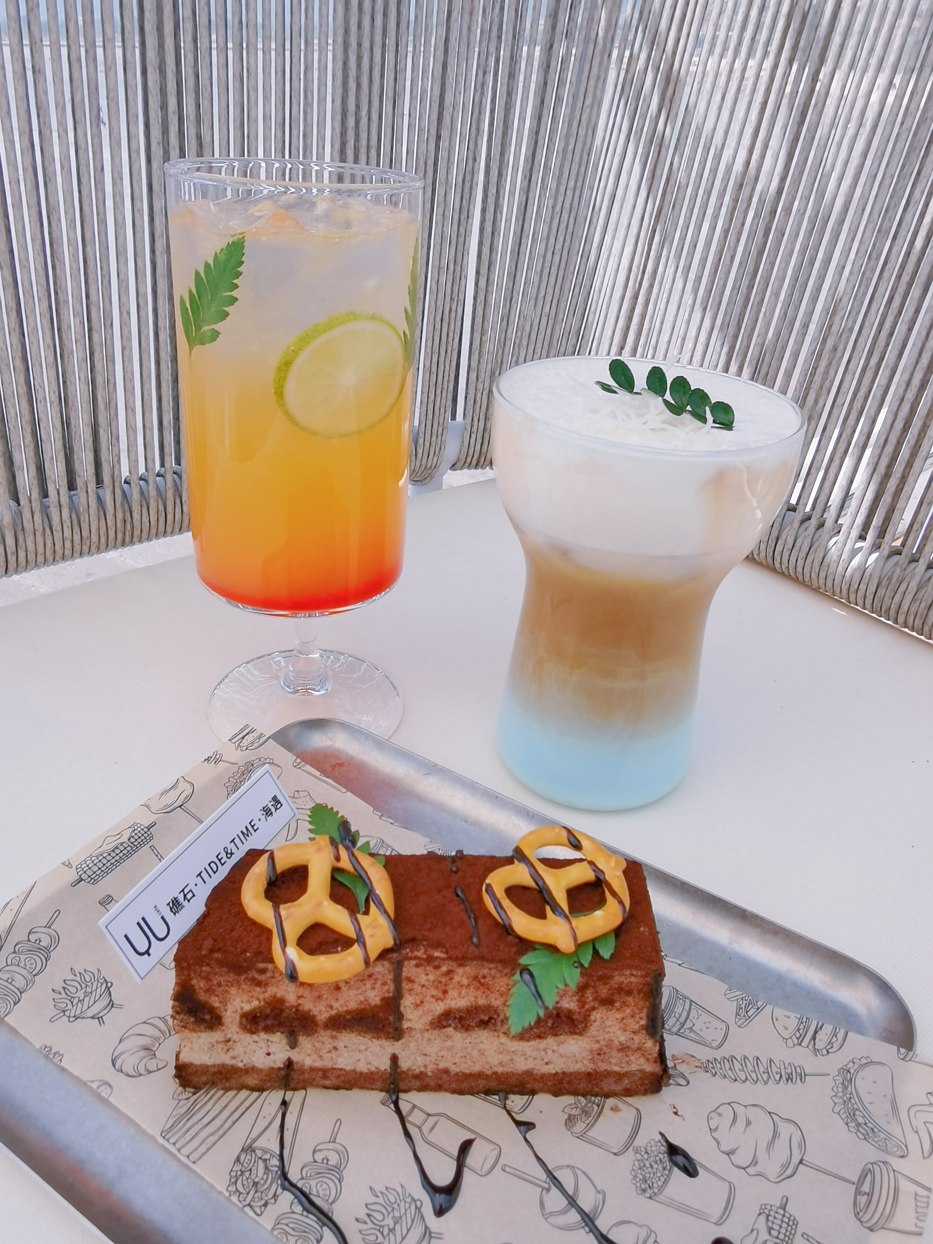 這里主打航海主題飲品:破浪(船說)拿鐵,咖啡上勾勒出白色浪花拉花,仿佛將大海捧在了手中;柚見山海,甜的柚香在舌尖綻放,融入了大海的深邃與山林的寧靜;嶗山茶,坐在船上喝一杯嶗山茶,感受著微咸的海風(fēng),讓自己徹底放空一下,簡直不要太愜意。