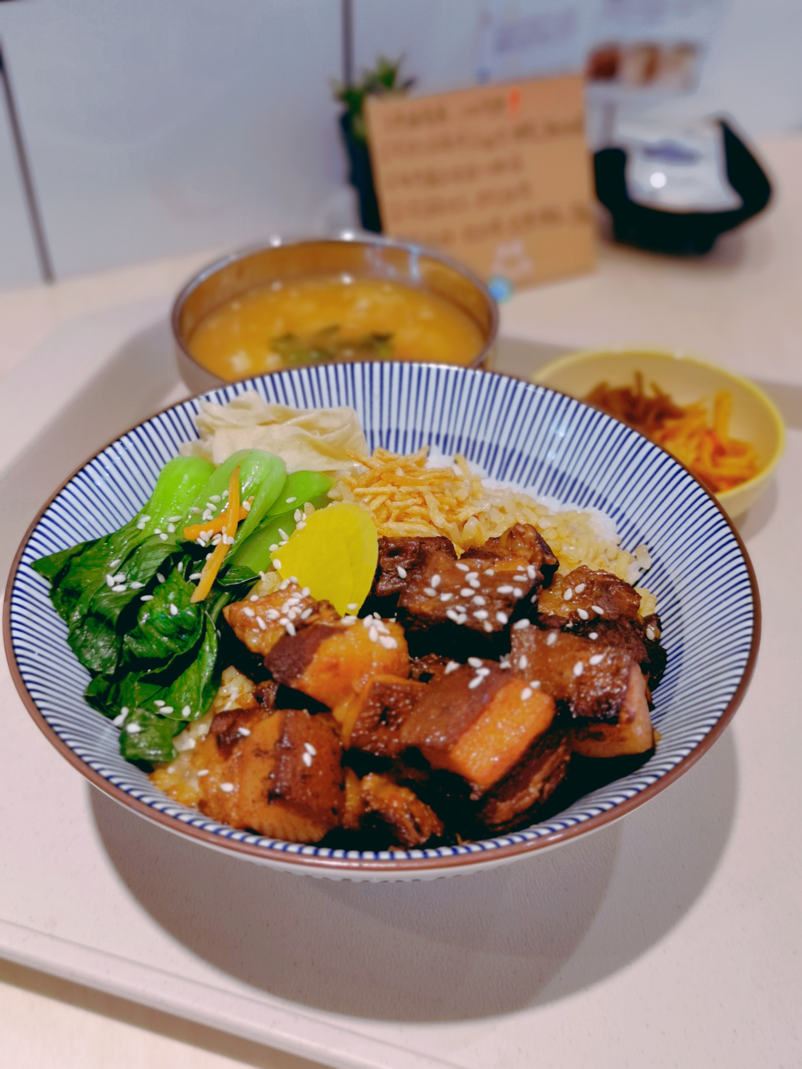 招牌燒肉飯,三層帶皮五花肉,醬香濃郁,米粒裹滿肉汁超黏糯,碳水+脂肪的雙重快樂。