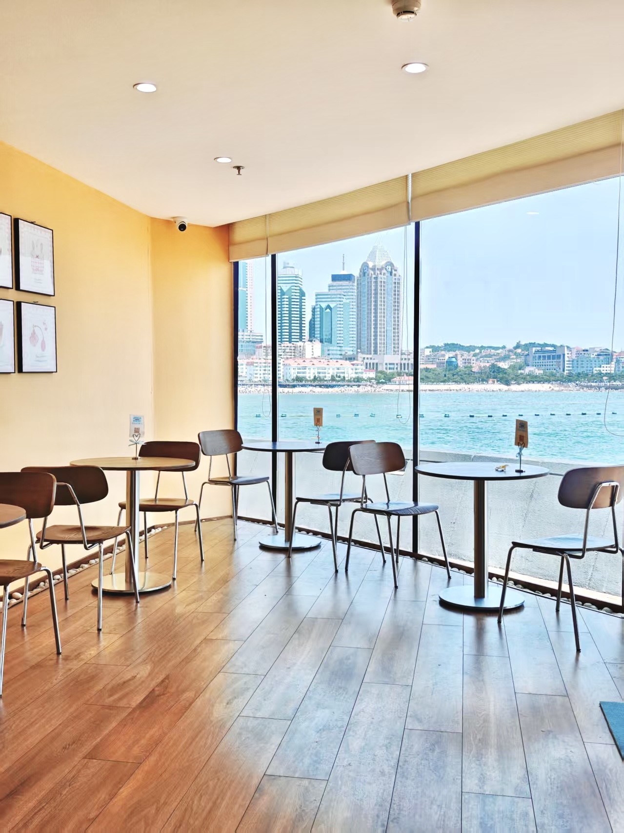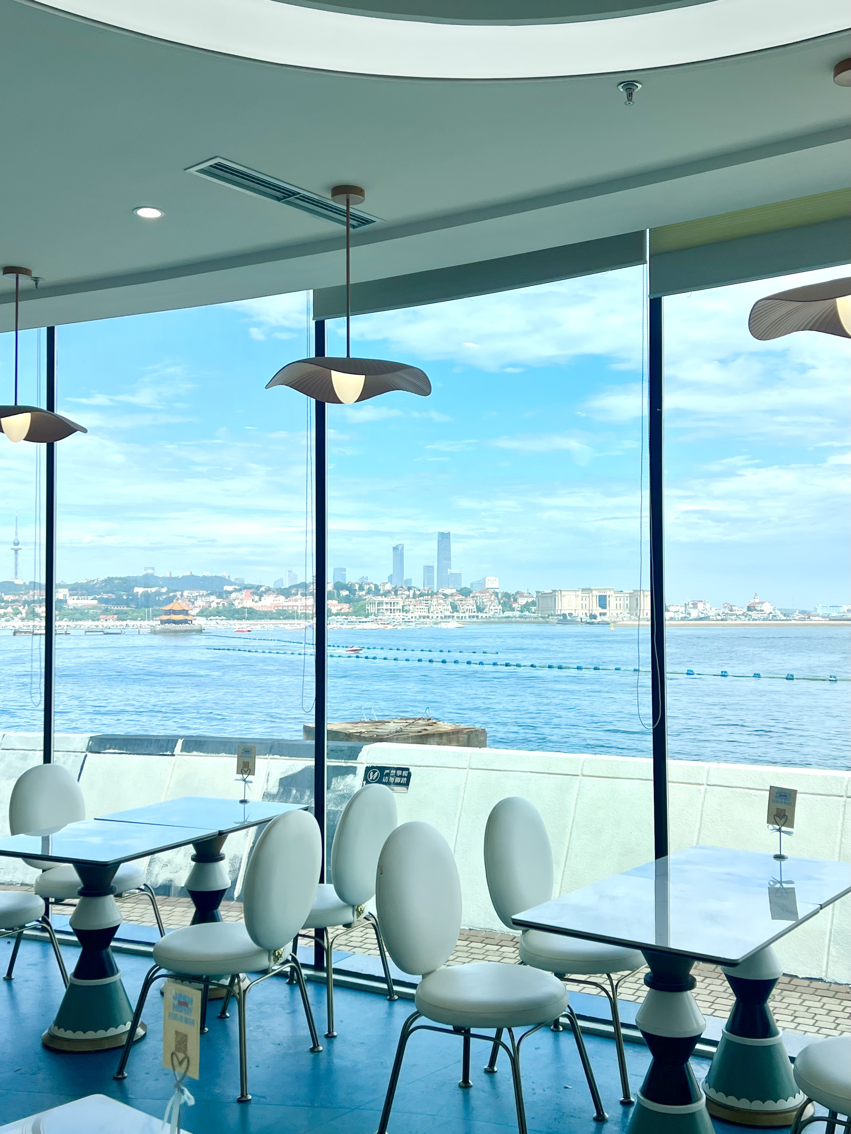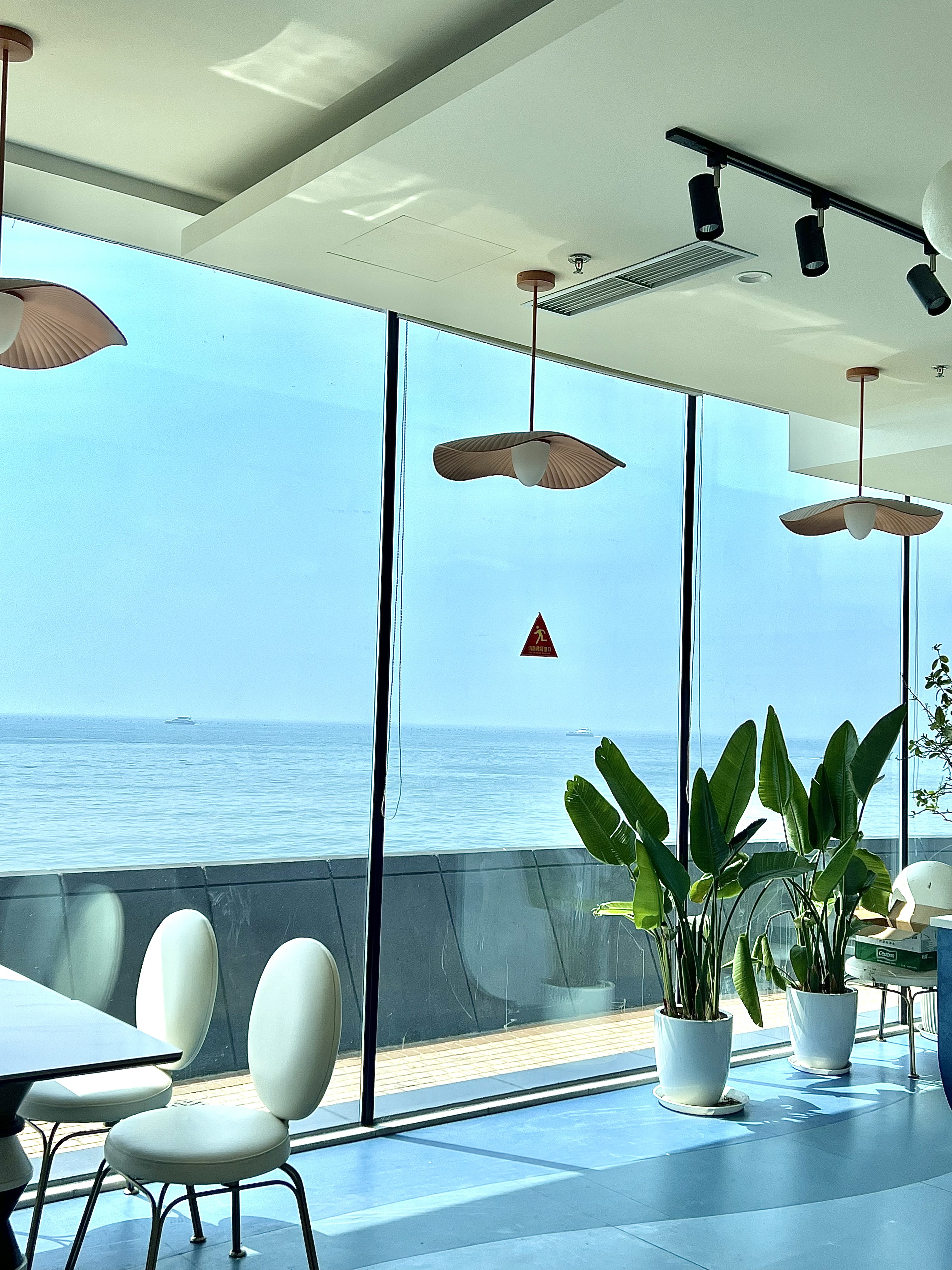 一推門韓系奶油ins風,這不就是濟州島的感覺嘛,店內(nèi)空間超寬敞,有一面很漂亮的鏡子,絕對是小姐姐們的最愛!可以說這里是離棧橋最近的海景西餐廳,落地窗框住整片碧海藍天,棧橋、海浪……點杯漂亮的飲品,吹著海風發(fā)呆,出片率100%。