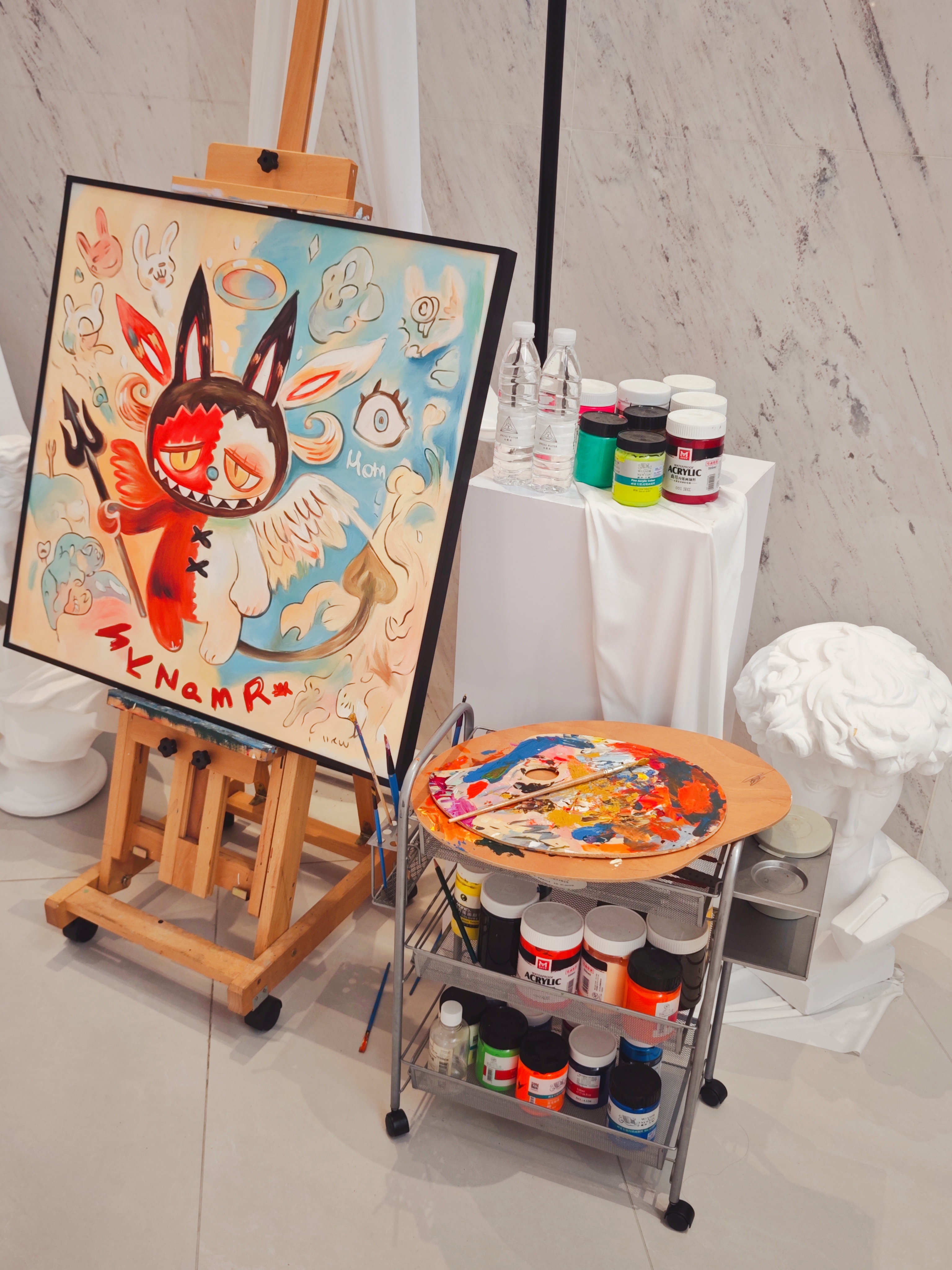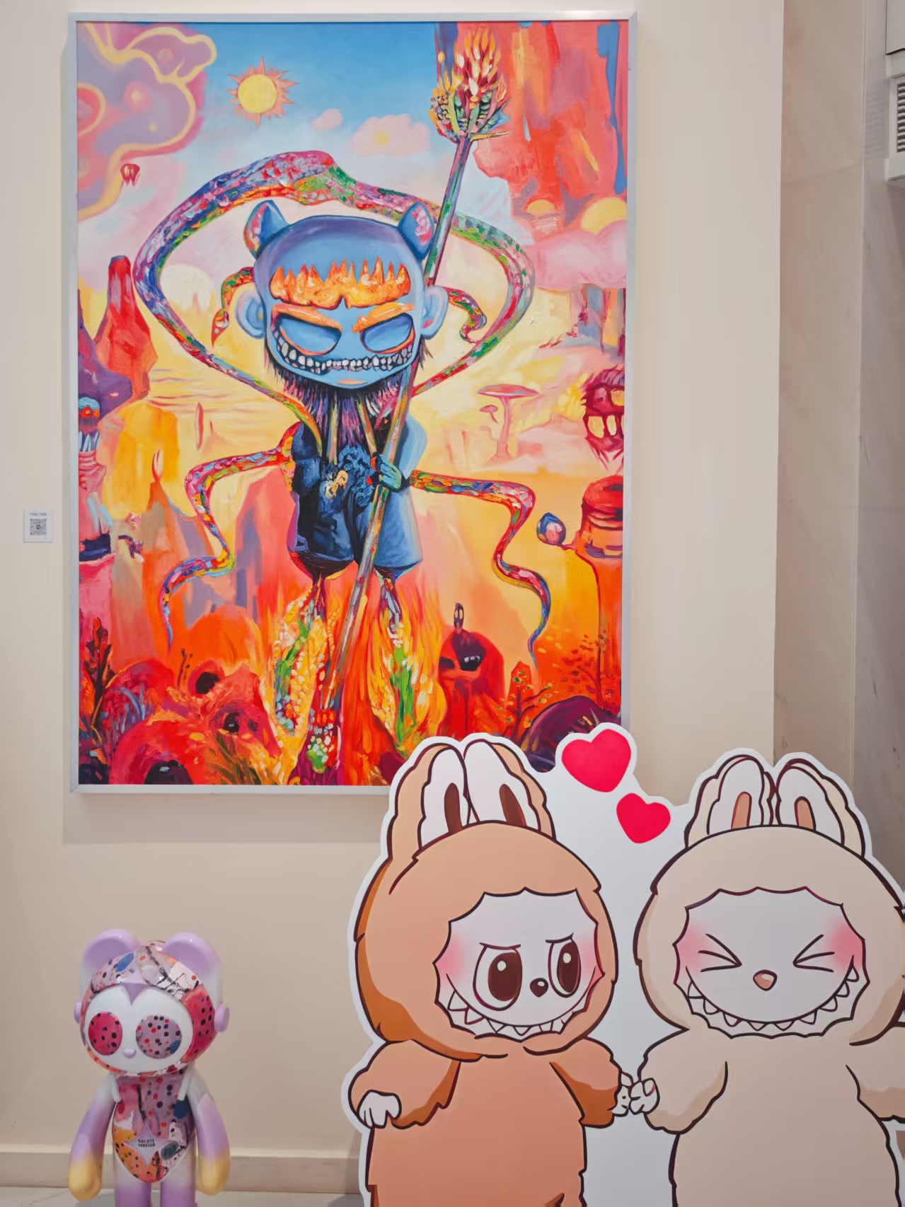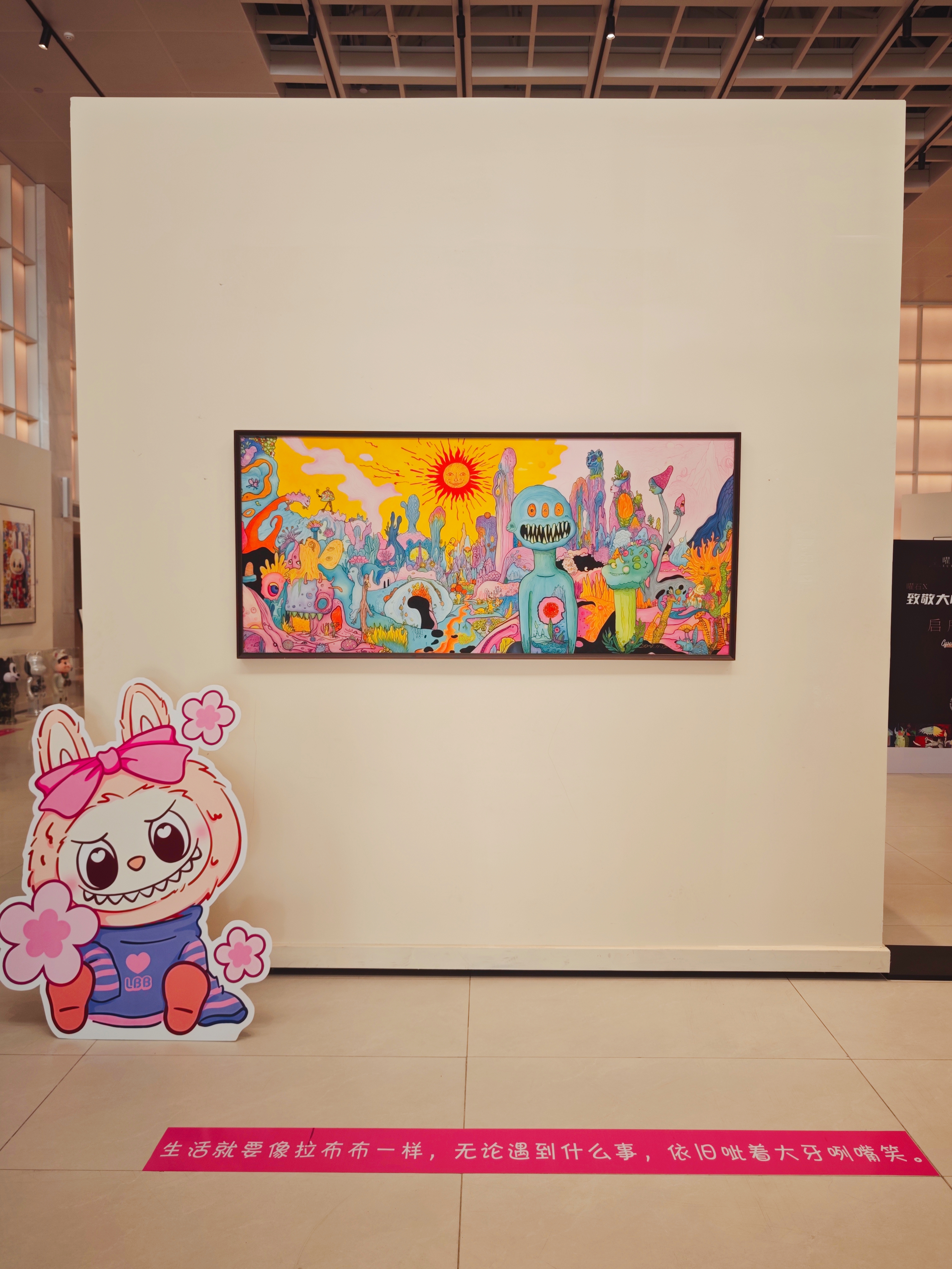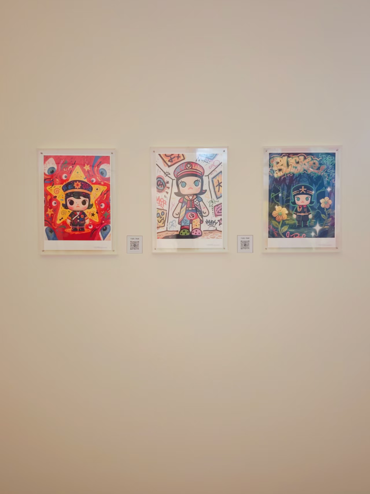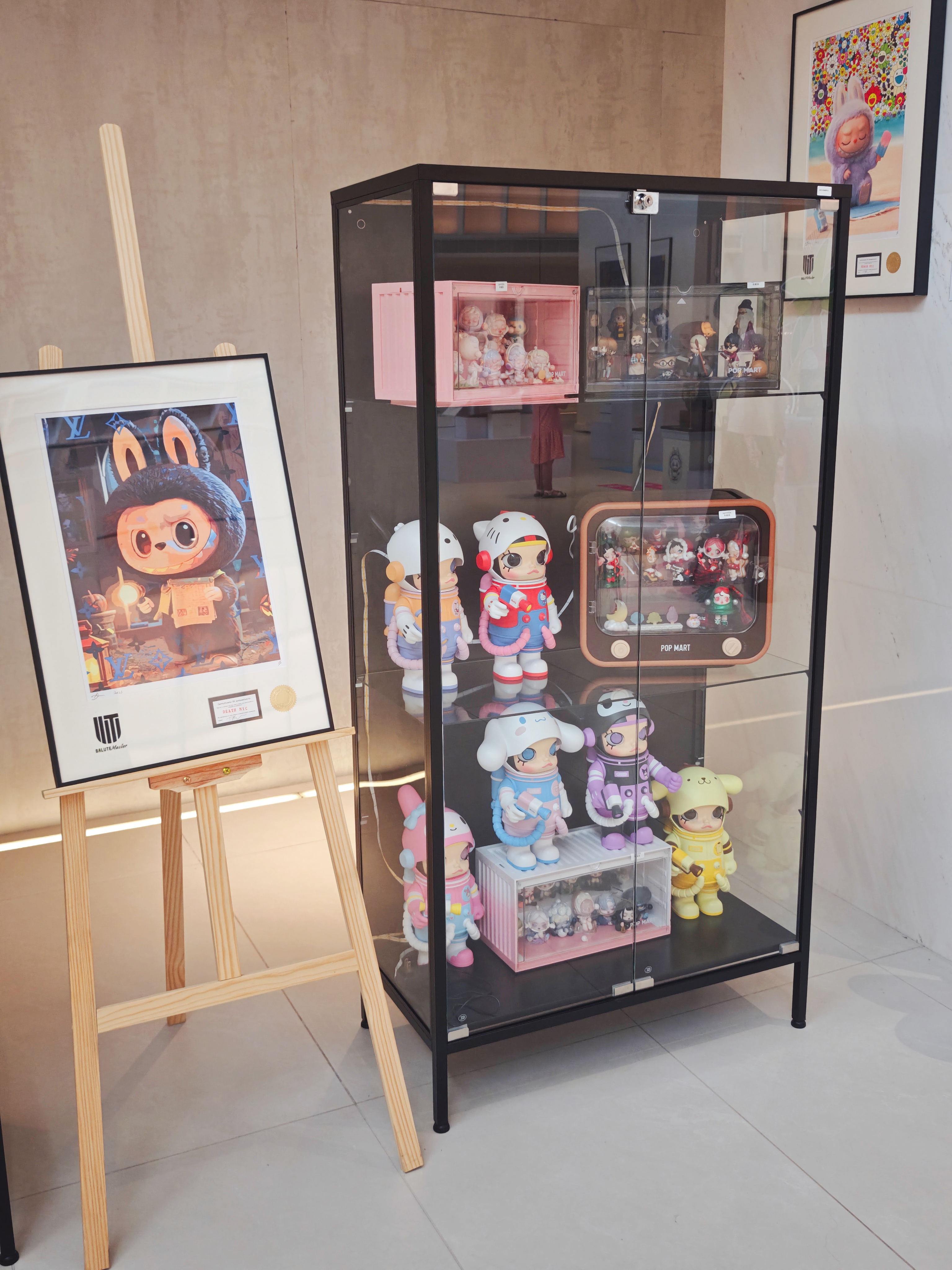 一樓展廳變身童話世界,Labubu和Molly的創(chuàng)意版畫(huà)、限量潮玩齊聚一堂,隨手一拍就是朋友圈C位大片。