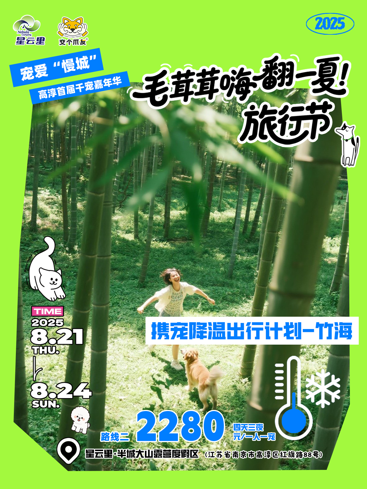 #交個爪友 聯(lián)合中旅自駕特別策劃【江南古剎攜寵祈福 & 竹海避暑】4天3晚深度之旅,北京/天津/濟南/青島/煙臺/濟寧出發(fā),可落地團星云里·半城大山露營度假區(qū) 集合!