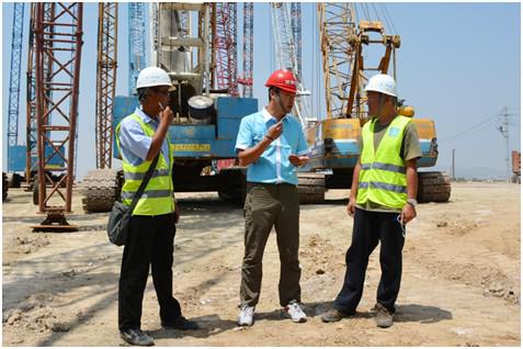 呂克斌正忙著與施工人員交流工程情況
