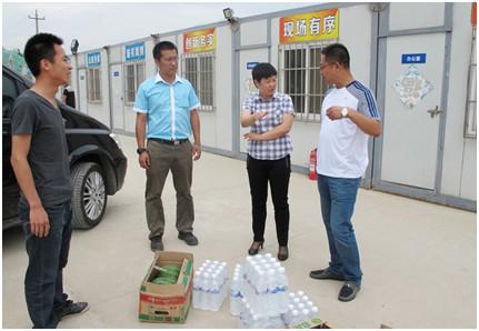 ????為保障建設(shè)者的身體健康,確保他們?nèi)硇耐度氲桨踩ぷ髦校?月10日,集團(tuán)總經(jīng)理助理郭淼代表集團(tuán)開展了夏季送清涼活動,在炎炎夏日給堅(jiān)守崗位的建設(shè)者們送上了絲絲涼意,為他們送去了西瓜、礦泉水等清涼食品?!扒鄭u到了夏季,天氣悶熱,集團(tuán)的關(guān)懷讓我們卯足了干勁,將保質(zhì)保量的完成工程任務(wù)”董志強(qiáng)表示。????